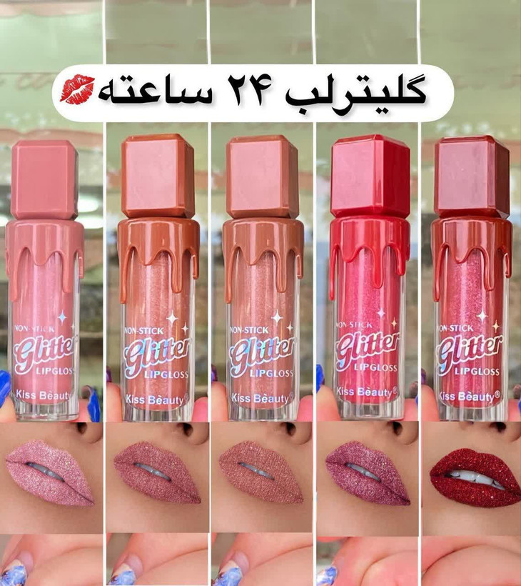 گلیتر لب های کایلی ( طرح گلیتر لب های دوپ) رژ های ۲۴ ساعته و ماندکارن که به شدت شاینی و خوشرنگه دخترا